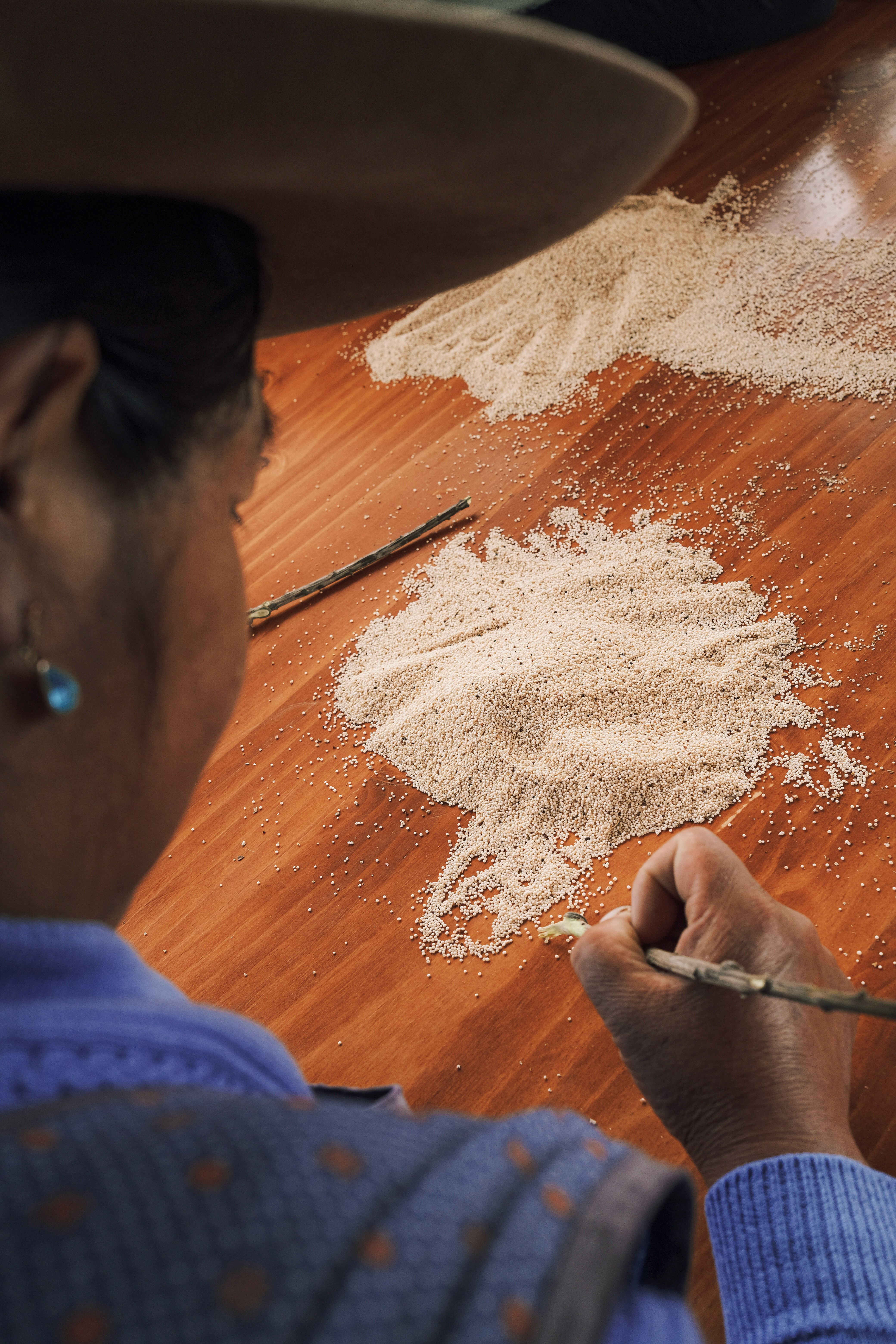 Implementing the AYNI system, which means reciprocity, we promote a rotating work system that allows more people to participate in the harvest.