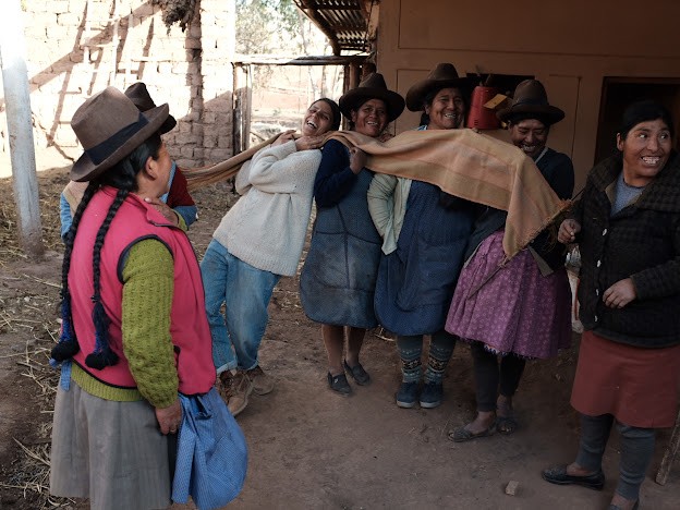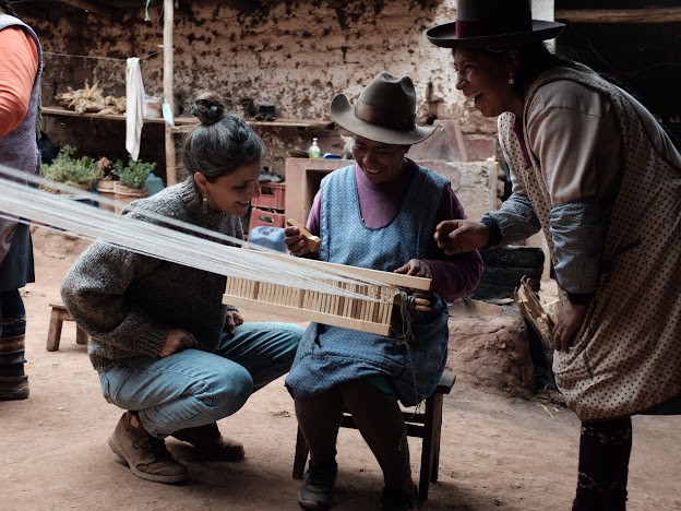 La artista visual e investigadora colombiana Isabella Celis realizó una residencia artística de dos meses en la comunidad de Mullak’as Misminay, en Cusco, junto a la asociación Riqchari Chaska, conformada por 25 mujeres que se reúnen a tejer, teñir, cocinar y preservar prácticas tradicionales, como el tejido en telar. A través del diálogo y la creación colectiva, exploraron las simbologías andinas vinculadas a las montañas, los animales, la lluvia y los ríos, reinterpretándolas mediante técnicas nuevas introducidas por la artista, como el dibujo con leches vegetales y animales sobre tela, el teñido con plantas tintóreas locales y el bordado tradicional. Algunas mujeres optaron por bordar, una técnica familiar con la que se sienten más identificadas. Las conversaciones que surgieron durante el trabajo fortalecieron los lazos entre ellas, quienes recordaban a sus madres y abuelas tejiendo los mismos símbolos. Como resultado, se crearon productos que hoy se venden en la tienda de MIL, generando ingresos para la asociación y contribuyendo a la continuidad de estas prácticas.