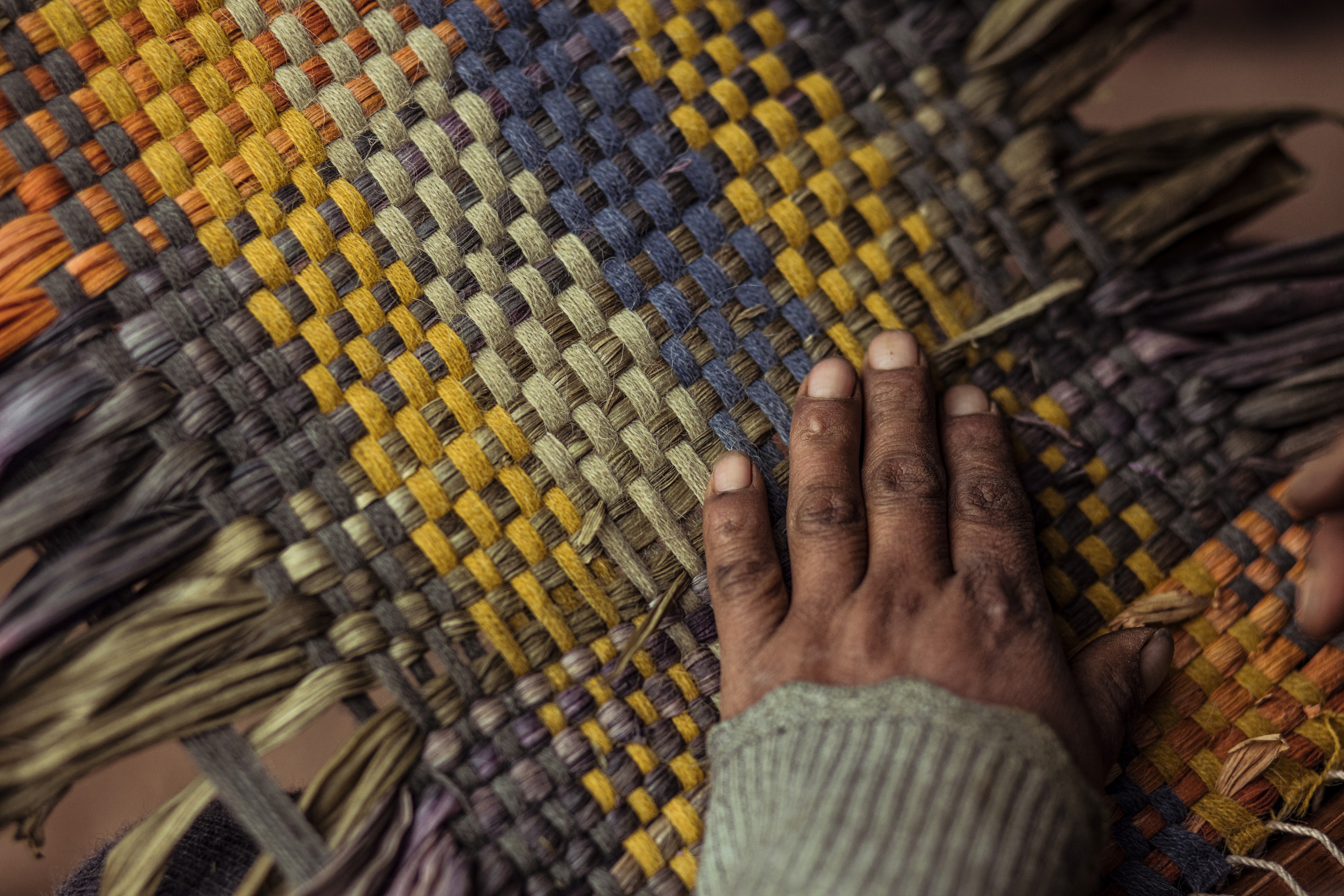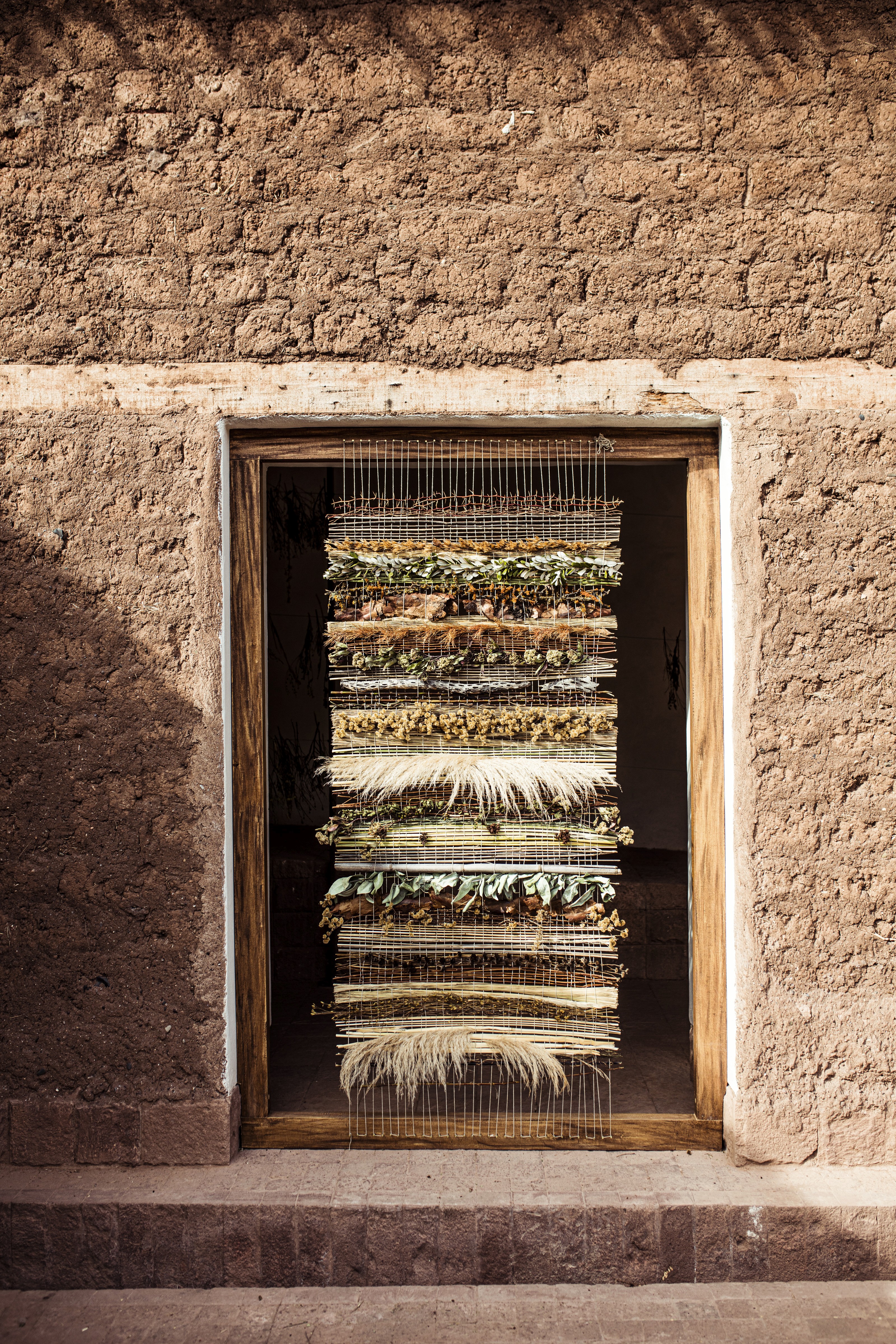 La residencia de la diseñadora egipcia Nada Atalla en la comunidad de K’acllaraccay se centró en la investigación y creación de piezas utilitarias a partir de fibras vegetales provenientes del descarte agrícola y lanas teñidas con tintes botánicos. En el taller, denominado “Sacha”, participaron ocho mujeres de la comunidad, quienes eligieron el nombre. La artista y las tejedoras recolectaron tallos, hojas y otras fibras vegetales, como la panca de maíz, un insumo de gran valor simbólico y cultural en los Andes, y el resistente hilo que se extrae de las espinas de la cabuya, ambas plantas abundantes en la zona. Para la creación de las piezas, estas fibras se combinaron con lanas de alpaca teñidas con tintes naturales, elaborados por las mujeres del colectivo Warmis en una residencia previa. Usando la herramienta ancestral del telar de cintura, crearon una colección de accesorios de mesa, estableciendo un vínculo entre arte, agricultura y sostenibilidad.